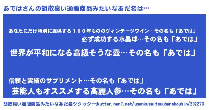 | 意味不明あだ名 | 『あではフォーエバー』『自称あでは』 |