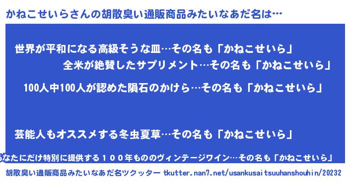 | 欧米人風あだ名 | 『ダニエルかねこせいら』 |