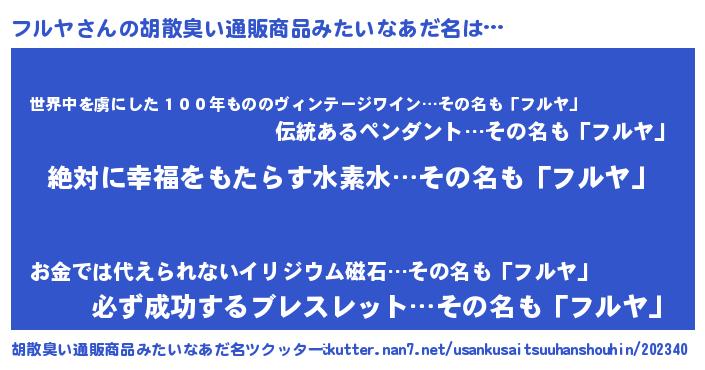 | ヘコむあだ名 | 『フルヤ(苦笑)』『フルにー』 |