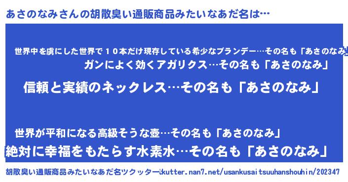 | ヘコむあだ名 | 『あさっぺ』『あさのなみ(震え声)』 |