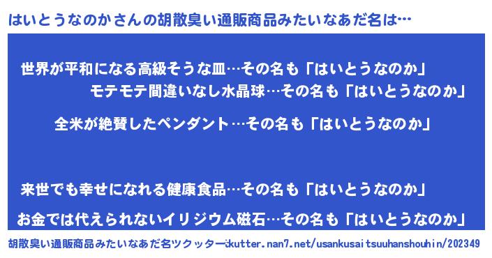 | 男性向けラノベタイトル風あだ名 | 『はいとうなのかの嫁は女の子じゃないと思った?』 |