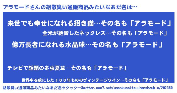 | ヘコむあだ名 | 『アラにゅー』『アラモード(笑)』 |
