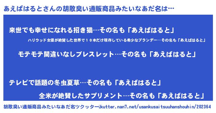 | ヘコむあだ名 | 『あえにー』『あえばはると(笑)』 |