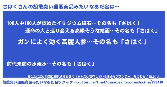 | ヘコむあだ名 | 『つくし』『さはく(小並感)』 |