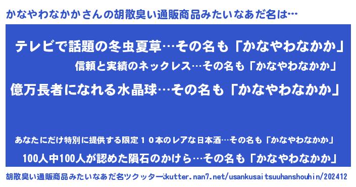 | 恥ずかしいあだ名 | 『プリティーかなやわなかか』 |
