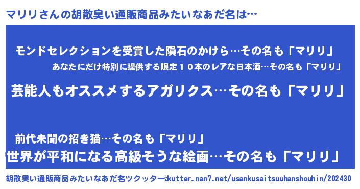 | ヘコむあだ名 | 『酢こんぶ』『マリリ(震え声)』 |