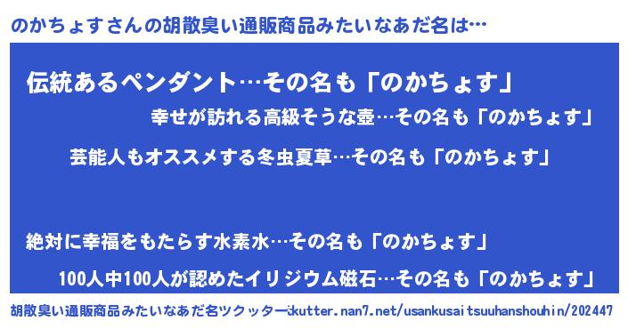 | ピコ太郎風あだ名 | 『ノカ十郎』『ノノ太郎』『ピノ太郎』 |