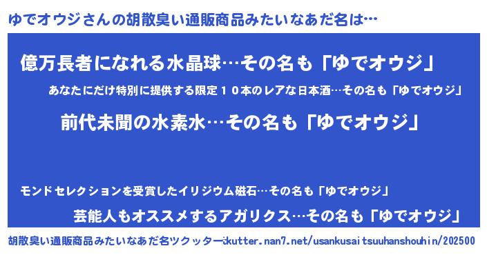| ヘコむあだ名 | 『ゆでオウジ(震え声)』『ゆでにゅー』 |