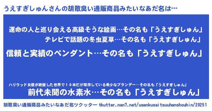 | 料理風あだ名 | 『うえすぎしゅんの豆乳スープ』 |