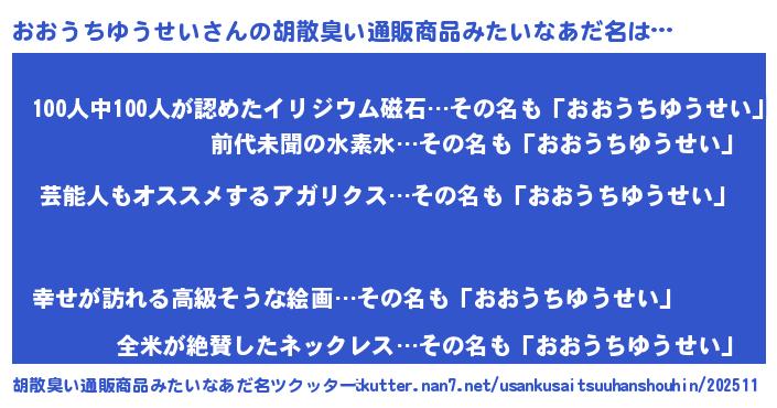 | 恥ずかしいあだ名 | 『オオウチユウセイデラックス』 |
