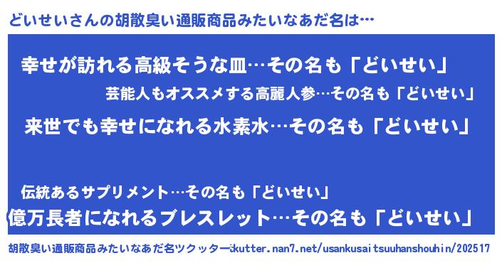 | ヘコむあだ名 | 『どいせい(震え声)』『豆乳』 |