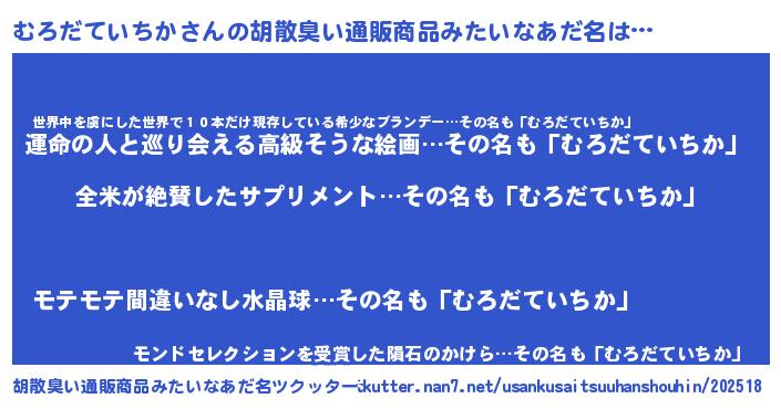 | 欧米人風あだ名 | 『ウサインむろだていちか』 |