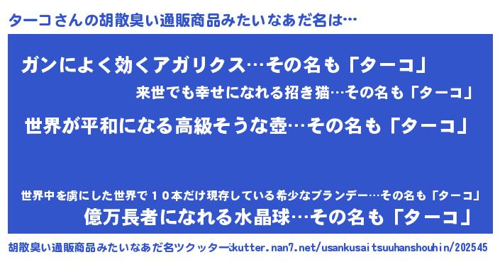 | 恥ずかしいあだ名 | 『ターっちょ』『ターコデラックス』 |
