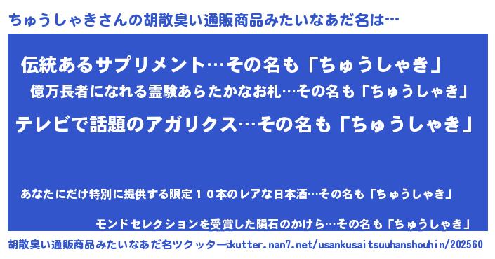 | 意味不明あだ名 | 『自称ちゅうしゃき』 |