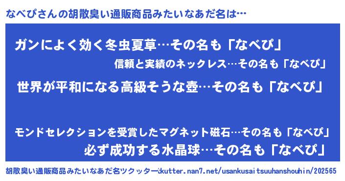 | 意味不明あだ名 | 『なべぴフォーエバー』『自称なべぴ』 |