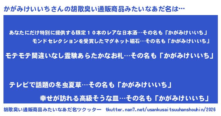 | 欧米人風あだ名 | 『マイケルかがみけいいち』 |