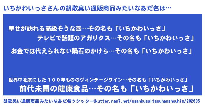 | ヘコむあだ名 | 『豆乳』『いちかわいっさ(笑)』 |