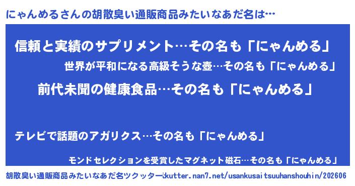 | ヘコむあだ名 | 『にゃんめる(爆)』『にゃお』 |