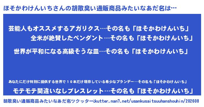 | 意味不明あだ名 | 『ほそかわけんいちフォーエバー』 |