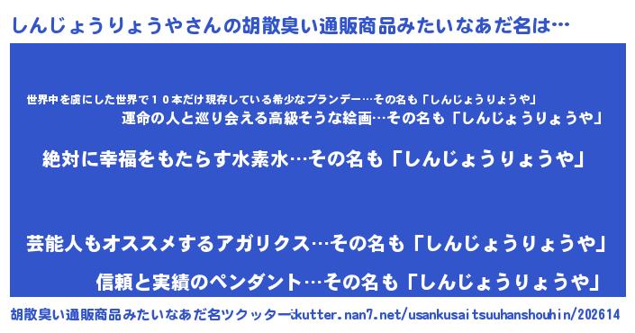 | 男性向けラノベタイトル風あだ名 | 『しんじょうりょうやという概念が存在しない退屈な世界 』 |