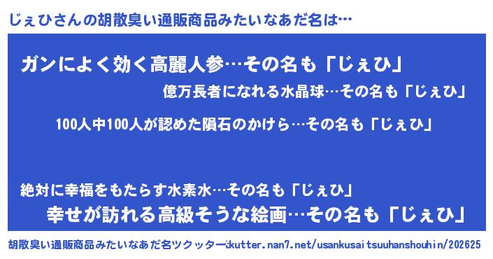 じぇひさんの胡散臭い通販商品みたいなあだ名をツクッター!