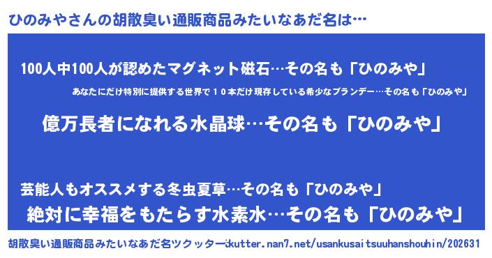 | 意味不明あだ名 | 『ペロリンひのみや』『永久保存ひのみや』 |