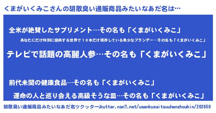 | 意味不明あだ名 | 『自称くまがいくみこ』 |