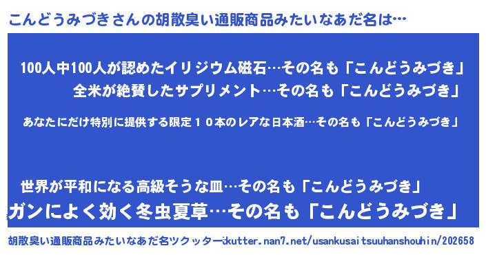 | 意味不明あだ名 | 『住所不定無職こんどうみづき(59歳)』 |