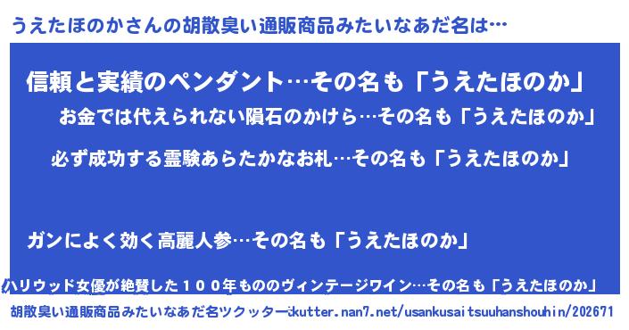 | 伝説のあだ名 | 『伝説のスナイパーうえたほのか』 |
