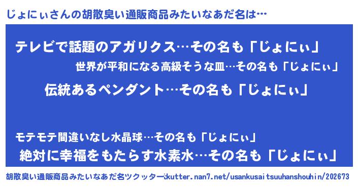 | ヘコむあだ名 | 『じょっちょ』『じょにぃ(遠い目)』 |