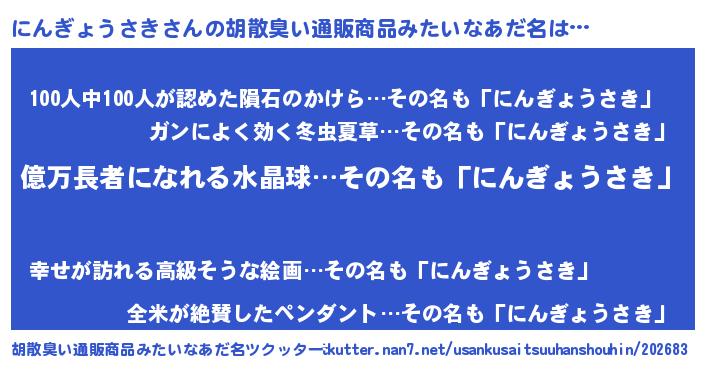| 男性向けラノベタイトル風あだ名 | 『ニンギョウサキアートオンライン』 |