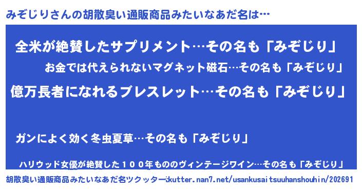 | 欧米人風あだ名 | 『マイケルみぞじり』『ウサインみぞじり』 |