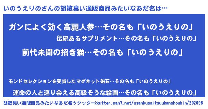 | 意味不明あだ名 | 『永久保存いのうえりの』 |
