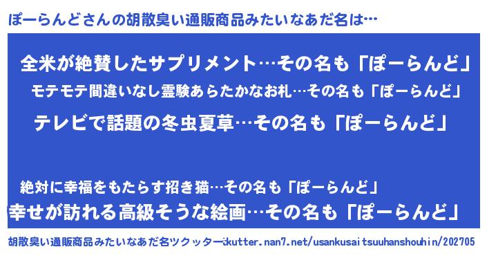 | 意味不明あだ名 | 『自称ぽーらんど』『ニラ科ぽーらんど属』 |