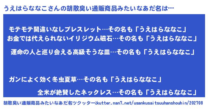 | 意味不明あだ名 | 『うえはらななこフォーエバー』 |