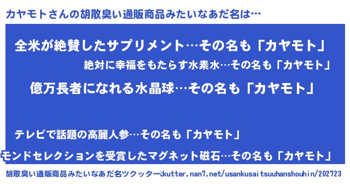 | ピコ太郎風あだ名 | 『カコ二郎』『カヤ三郎』『カカ太郎』 |