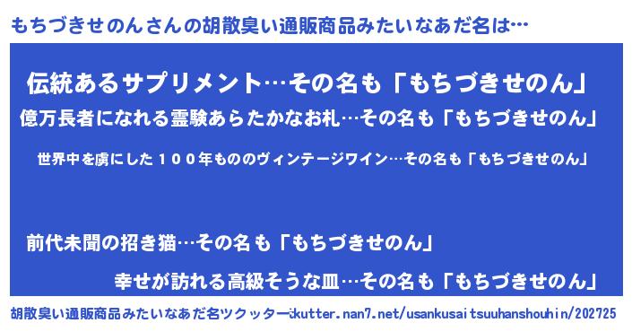 | 意味不明あだ名 | 『住所不定無職もちづきせのん(10歳)』 |