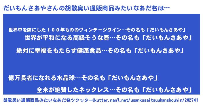 | ヘコむあだ名 | 『だいもんさあや(笑)』『だいを』 |