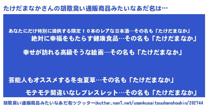 | 肩書あだ名 | 『たけだまなか総理大臣』 |