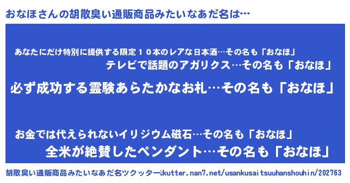 | 男性向けラノベタイトル風あだ名 | 『おなほの憂鬱』 |