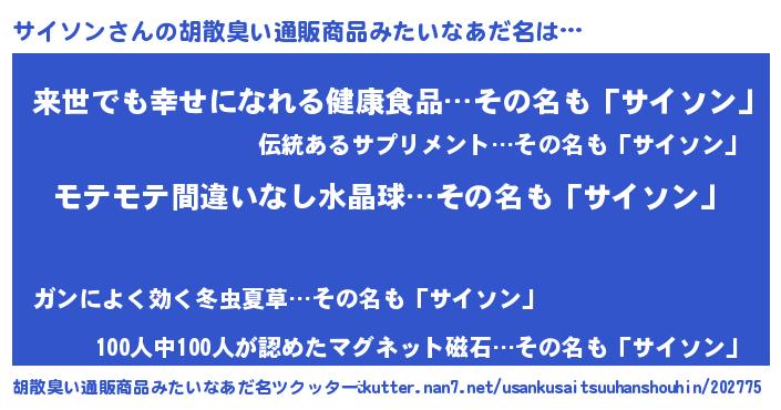 | 男性向けラノベタイトル風あだ名 | 『サイソンの憂鬱』『サイソンスレイヤー』 |