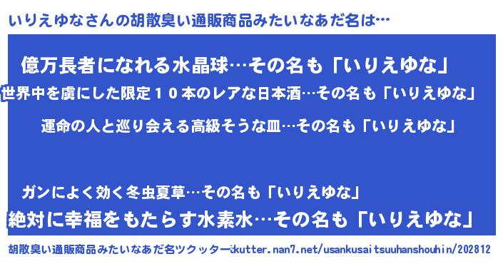 | 恥ずかしいあだ名 | 『いりっちょ』『プリティーいりえゆな』 |