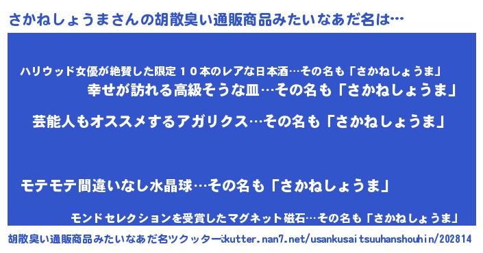 | 意味不明あだ名 | 『自称さかねしょうま』 |