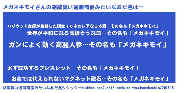 | 意味不明あだ名 | 『自称メガネキモイ』 |