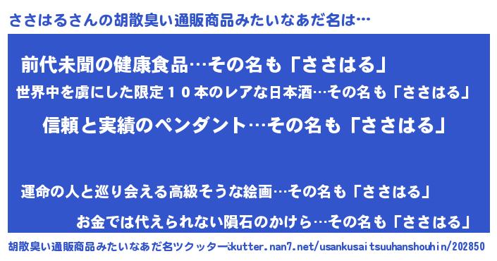 | 意味不明あだ名 | 『とにかく怪しいささはる』 |