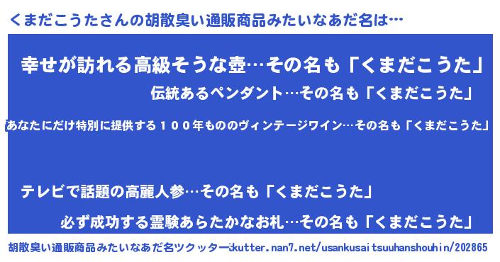| 意味不明あだ名 | 『住所不定無職くまだこうた(4歳)』 |