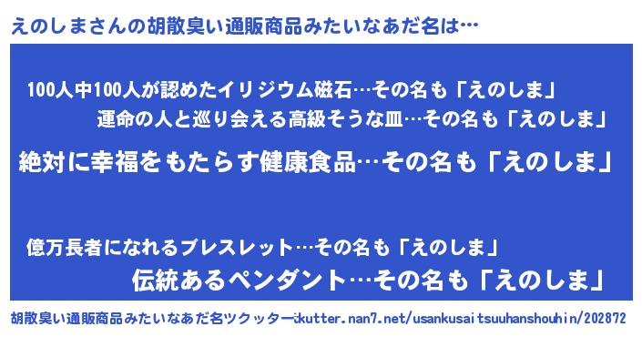 | 男性向けラノベタイトル風あだ名 | 『えのしまという概念が存在しない退屈な世界 』 |