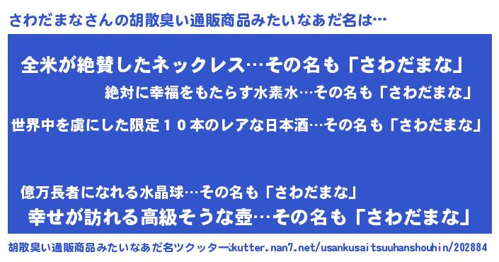 | 欧米人風あだ名 | 『ダレノガレさわだまな』 |
