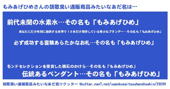 | ヘコむあだ名 | 『もみっふぃ~』『もみあげひめ(笑)』 |