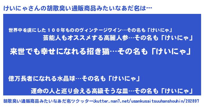 | 意味不明あだ名 | 『永久保存けいにゃ』『自称けいにゃ』 |